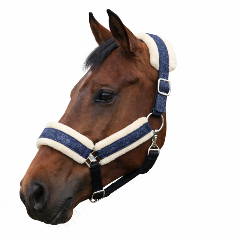 CS Horse and Design Glitter Halster met Faux Fur - Navy