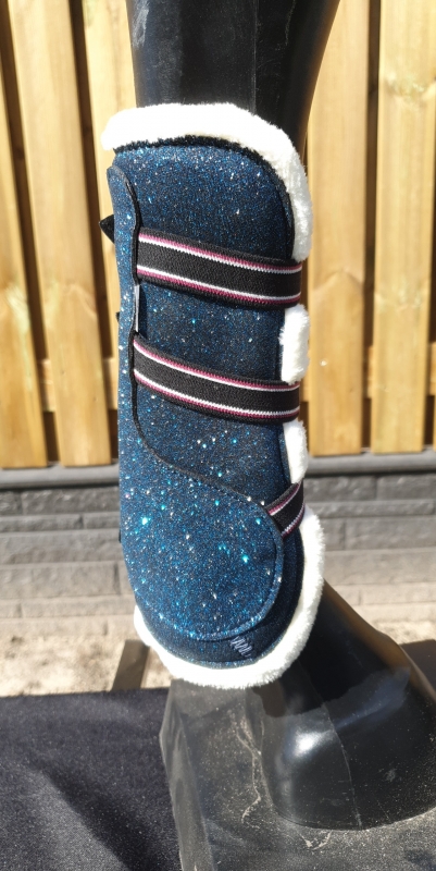 De stevige buitenschaal beschermt de paardenbenen tegen stoten en schuren, terwijl de zachte voering irritatie helpt voorkomen. Dankzij de subtiele glitterdetails krijgen de peesbeschermers een elegante uitstraling die perfect past bij een stijlvolle paardenuitrusting.