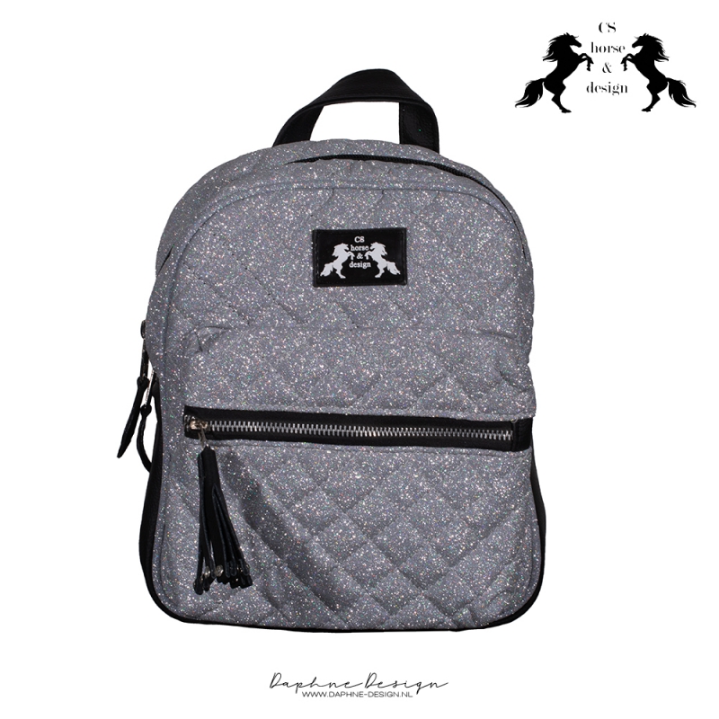 CS Horse & Design Glitter Rugtasje met Ritsvak - Zilver